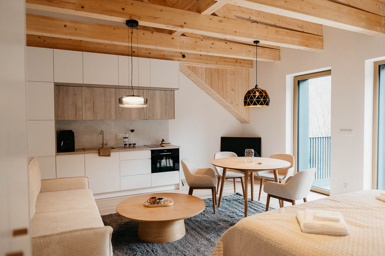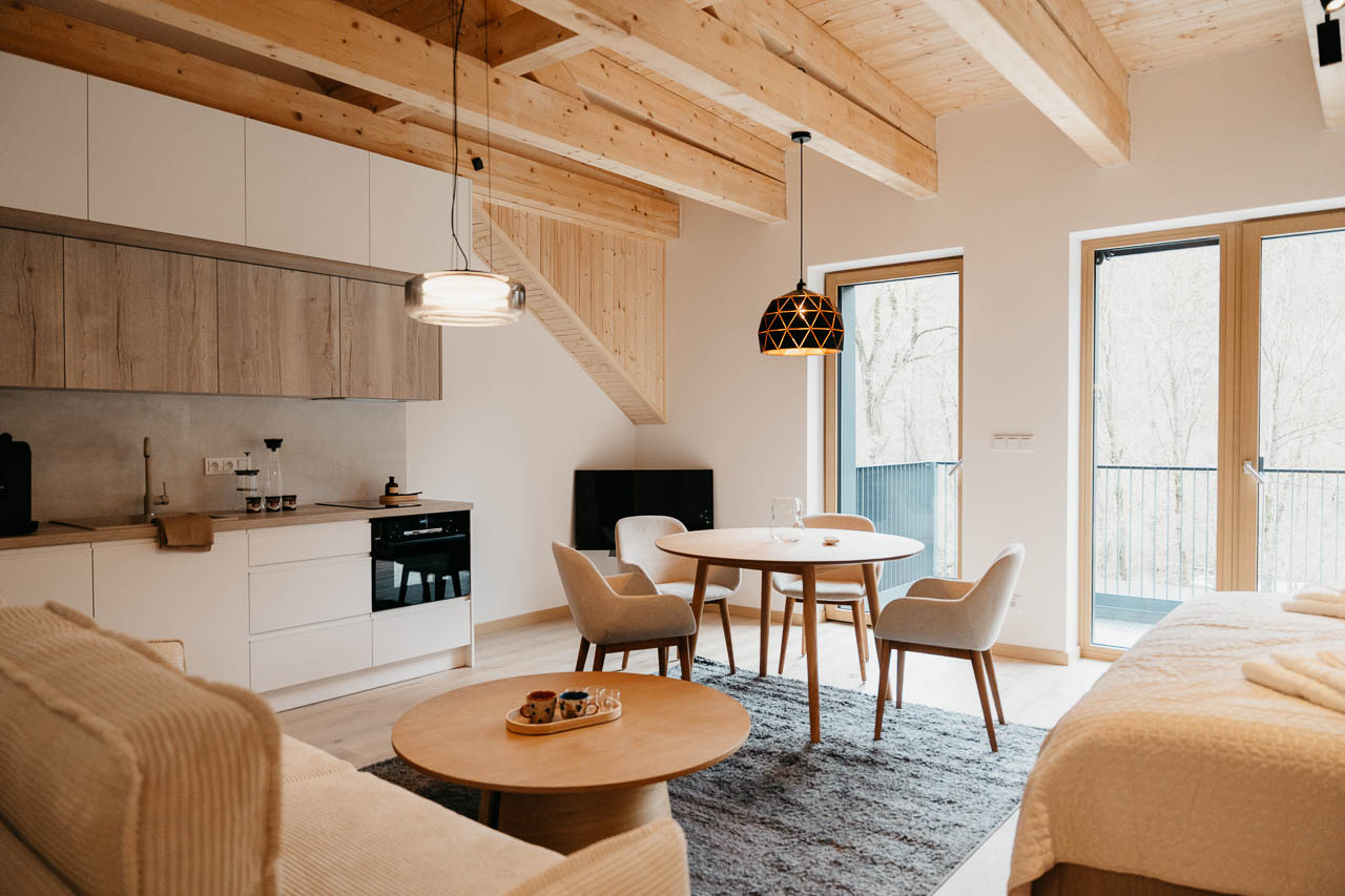 Úspěšně jsme dokončili montáž kuchyně a nábytku v prvním vzorovém apartmánu. Svou investici do moderního zázemí v obklopení klidné přírody Bílých Karpat si tak už nemusíte pouze představovat, ale můžete si ji na vlastní oči prohlédnout.